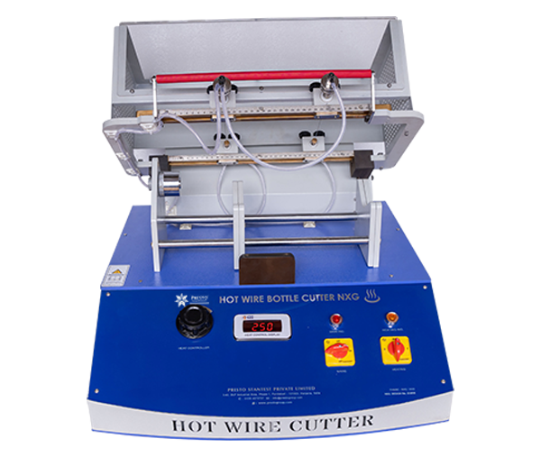 Hot Wire Bottle Cutter – NXG is a new generation tester used for accurate section weight analysis of PET bottles and containers. It displays heat monitoring in digital format. An efficient instrument for ideal and smooth cutting of test sample with the help of canthal heated cutting wires. Complete with Safety cover.