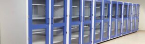powder coated metal storage cabinets for general purpose and polypropylene storage units for storing chemicals and other reagents. They can be customized with or without ventilation.