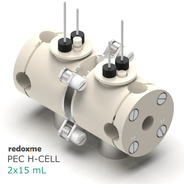 This cell allows several approaches to perform measurements in 2- or 3-electrode setups. It is designed to investigate performance of a thin film photo-anode (e.g. nanocrystalline material or conducting polymer) deposited on a rigid or flexible transparent substrate (typically fused quartz glass). The cathode (counter electrode) is mounted in the second chamber either in a top casing or attached on the side of the cell as a thin film deposited on rigid or flexible substrate. The reference electrode is mounted in a top casing of the same chamber as the photo-anode. Various auxiliary electrodes are suitable for this cell including metal wire, gauze and foil electrodes as well as non-metal electrodes and thin films. Typical applications include: basic photochemistry, photolytic water splitting, photoinduced charge separation and photocorrosion.